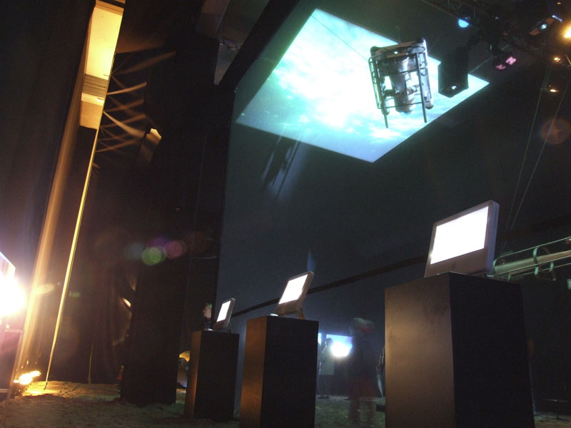 - › Interaktive Info-Terminals; im Hintergrund die Deckenprojektion [JPEG | 96 KB ]